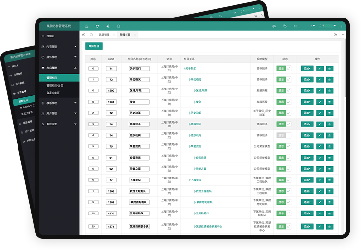 網站群系統支持集群式管理,各子站內容獨立維護,站點集中管理。網站群系統可對多個站點進行管理,支持對子站的新增、刪除、停止,支持批量發布網站