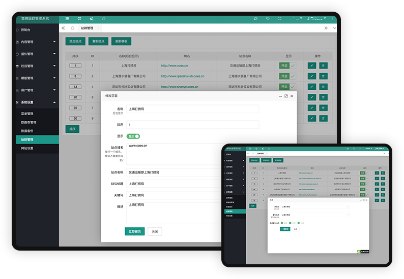 可編輯所有站點信息,域名信息,開啟或者關閉