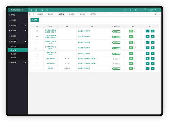 可以為每個站點創建獨立的角色信息,并可以對該站點下創建多個用戶,且多個用戶之間操作的權限可以分開設置